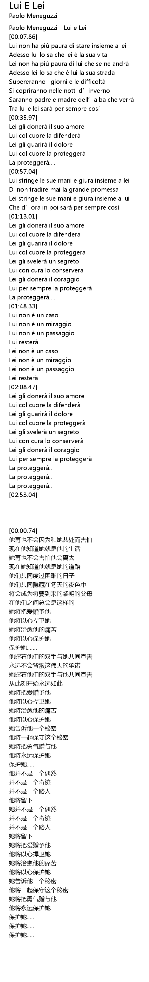 | [00:00.74] | Paolo Meneguzzi - Lui e Lei |