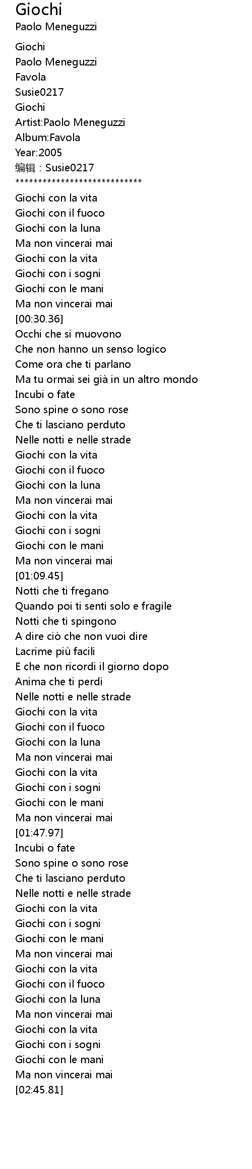 | [00:02.00] | Artist: Paolo Meneguzzi |