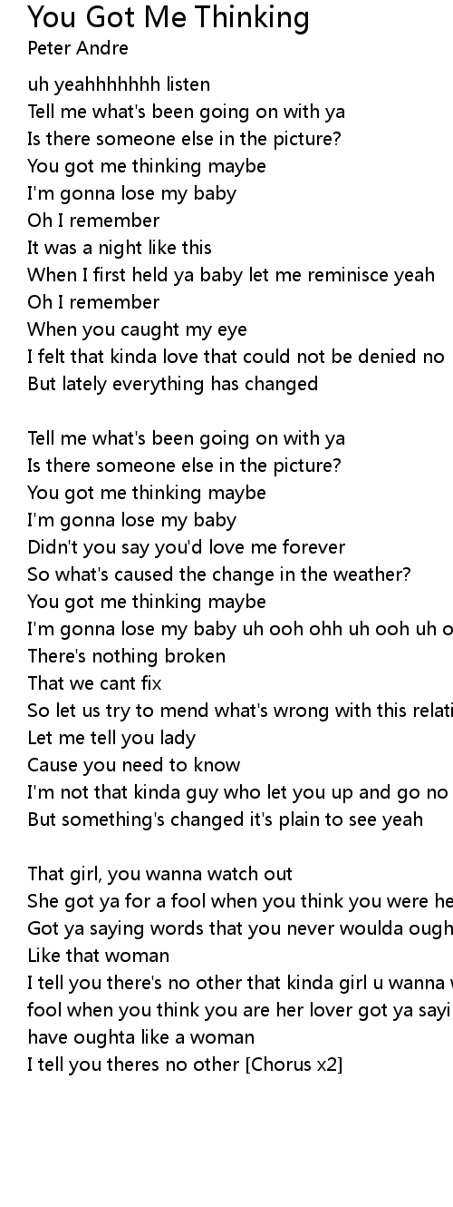 I tell you there's no other that kinda girl u wanna watch out she got you for a fool when you think you are her lover got ya sayin words that you never would have oughta like a woman |