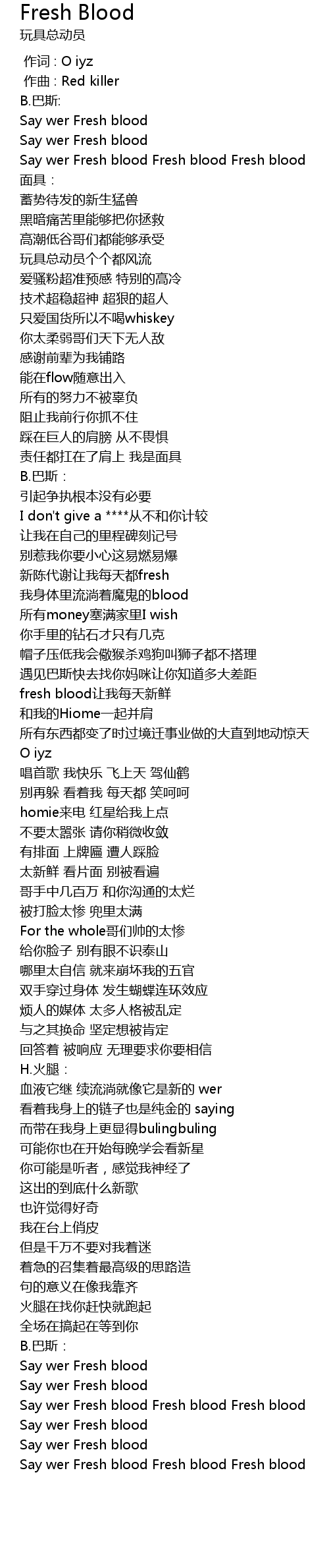 | [00:11.206] | Say wer Fresh blood Fresh blood Fresh blood |