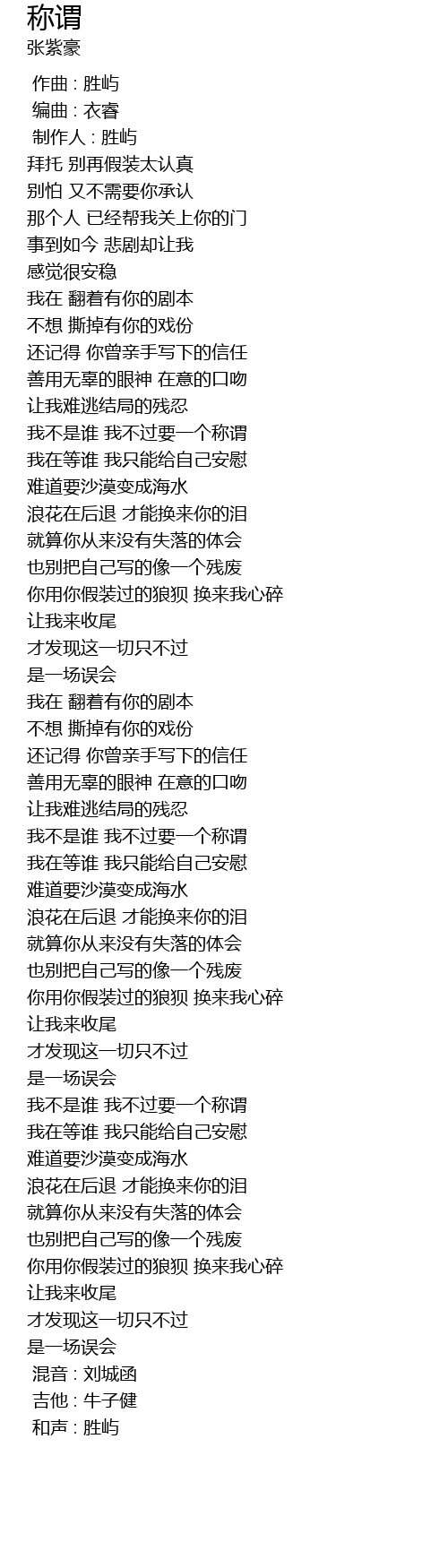 | [03:19.03] | 我不是谁 我不过要一个称谓 |