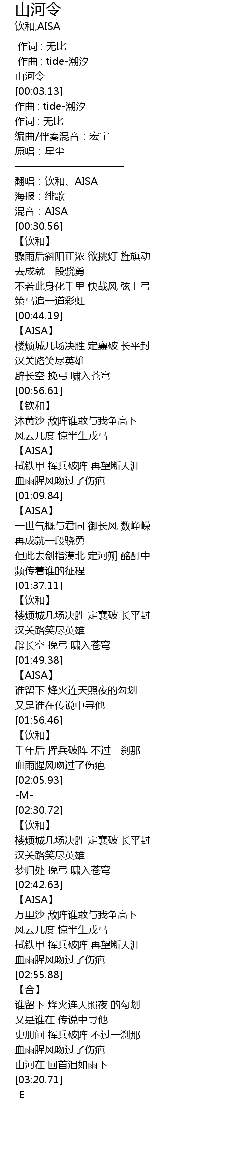 | [00:10.74] | 混音:AISA |