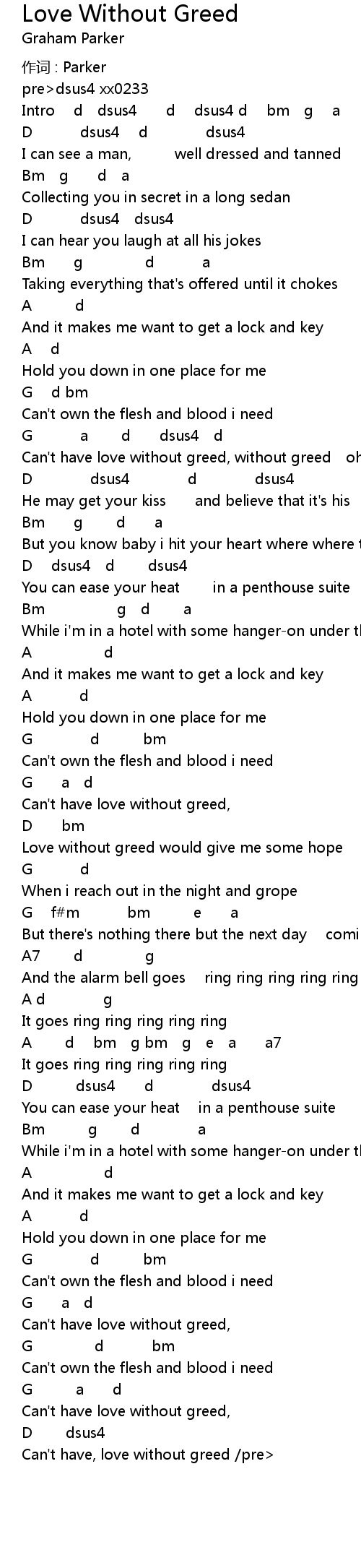 | Can't have, love without greed /pre> |