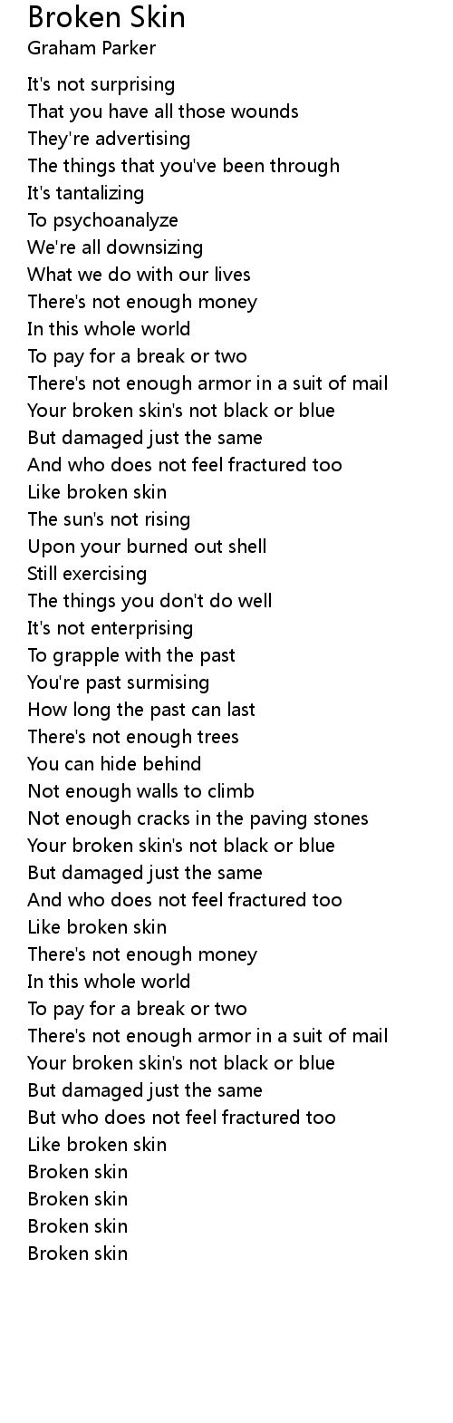 Your broken skin's not black or blue |