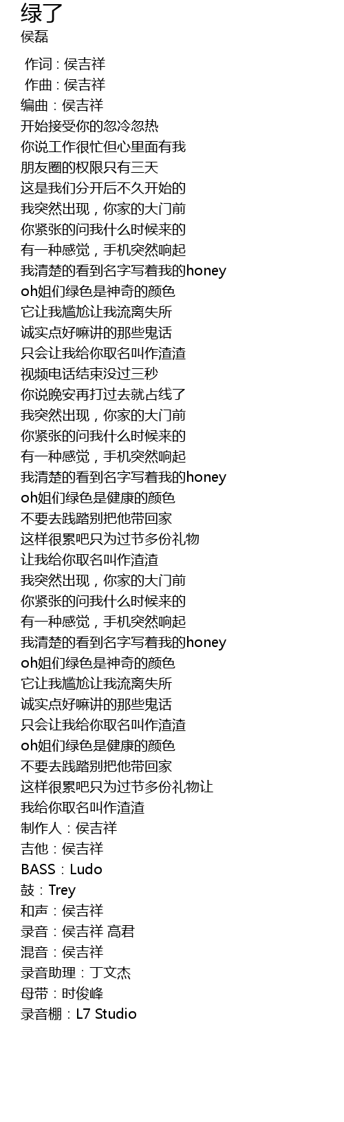 | [03:08.600] | oh姐们绿色是健康的颜色 |