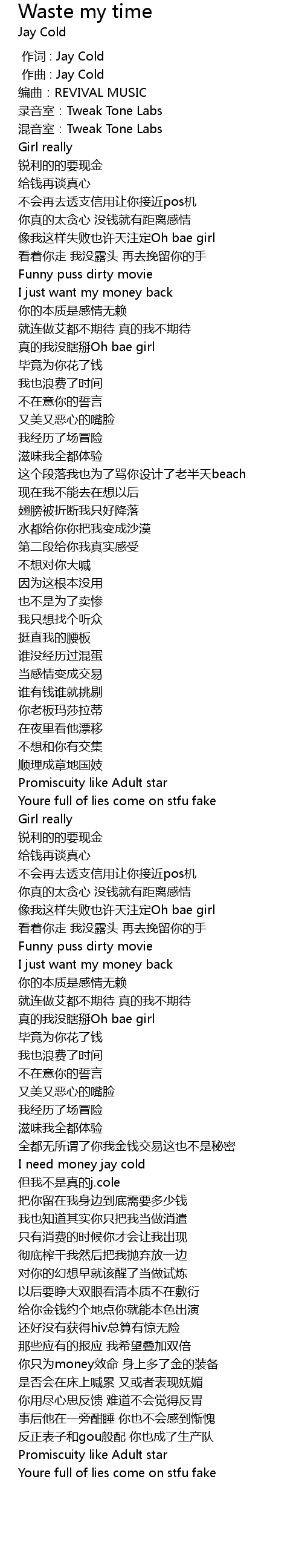 | [00:00.000] | 作词 : Jay Cold |