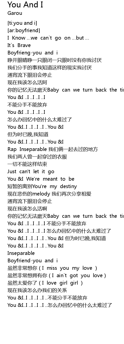 | [01:13.297] | You &I..I ..I ..I ..I ..You &I |