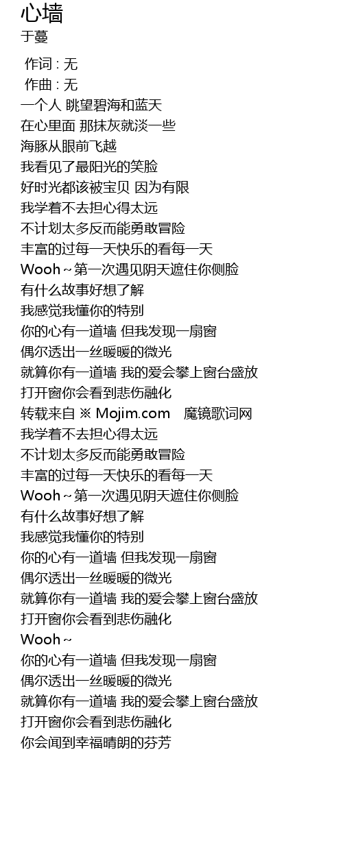 | [01:16.916] | 你的心有一道墙 但我发现一扇窗 |