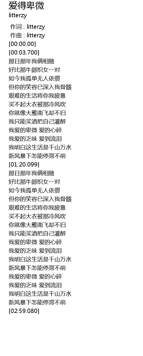 | [00:59.980] | 我爱的卑微 爱的心碎 |