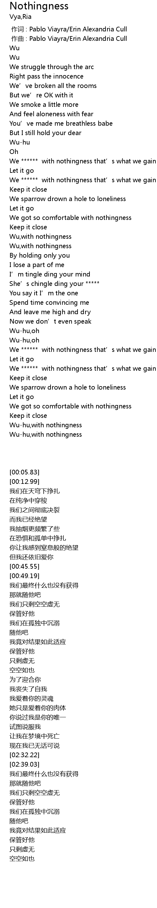 | [02:52.81] | We ****** with nothingness that’s what we gain |