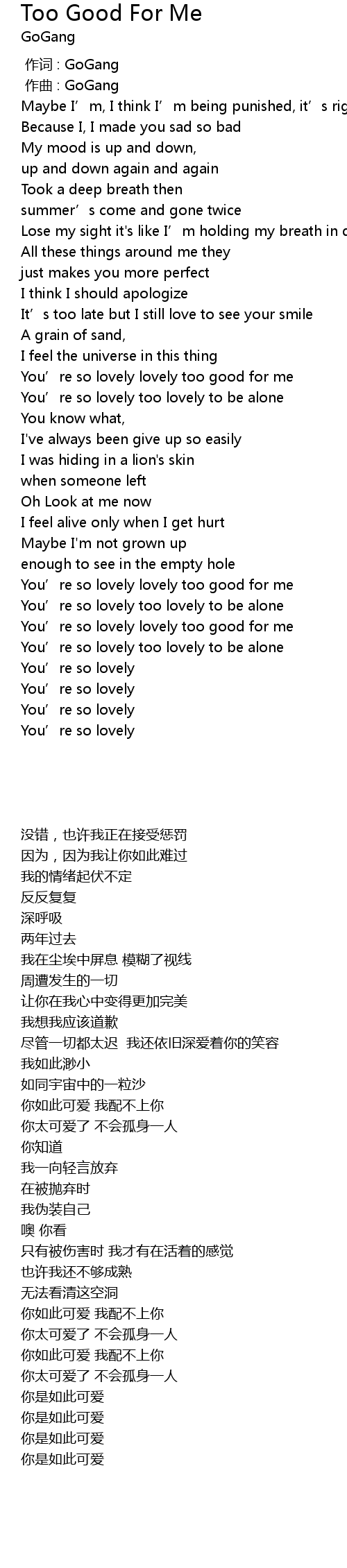 | [03:52.90] | You' re so lovely lovely too good for me |