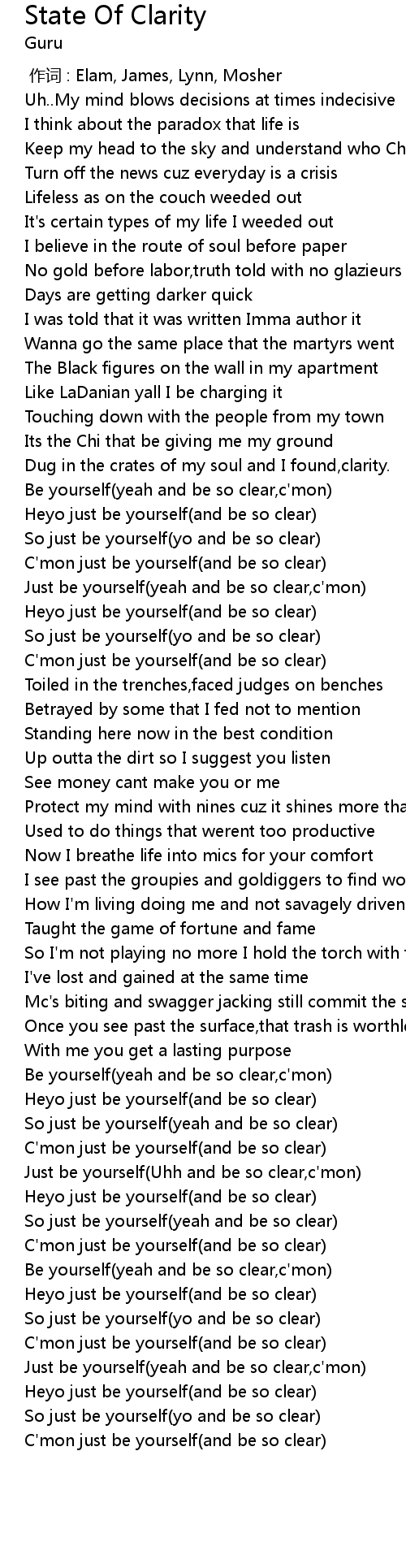 | [01:09.24] | Just be yourself yeah and be so clear, c' mon |