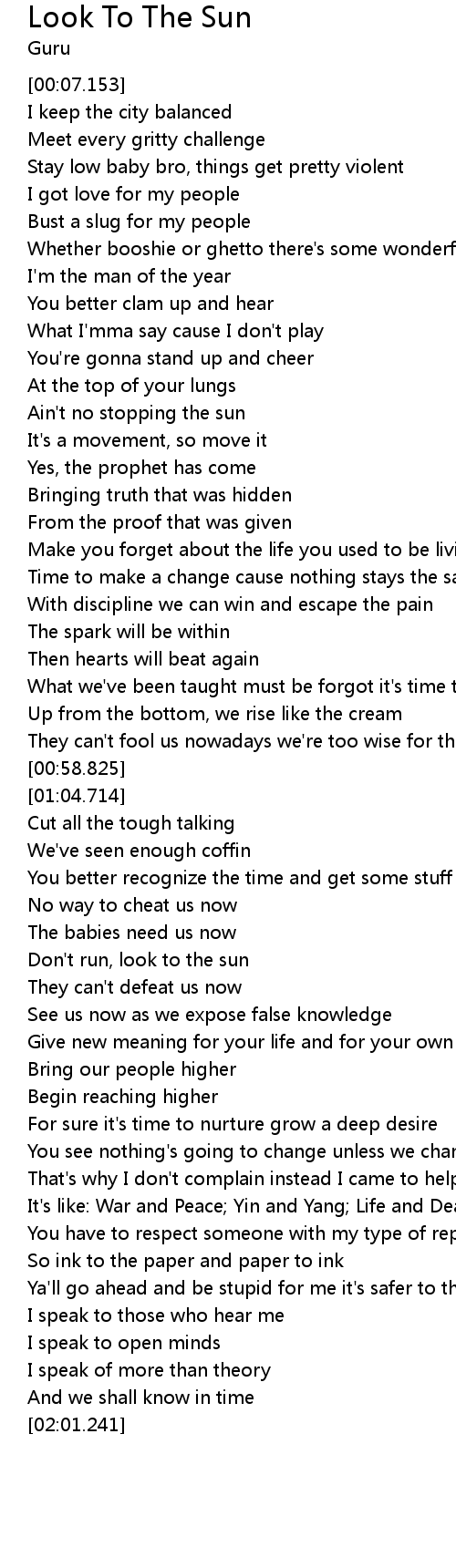 Don't run, look to the sun |