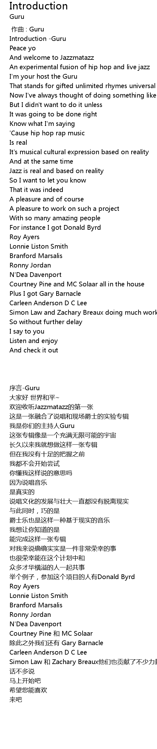 | [00:00.000] | 作曲 : Guru |