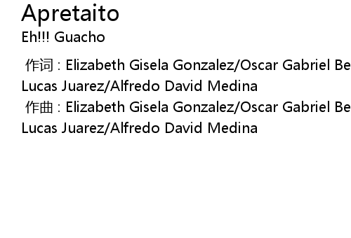 | [00:00.000] | 作词 : Elizabeth Gisela Gonzalez/Oscar Gabriel Belondi/Victor Lucas Juarez/Alfredo David Medina |