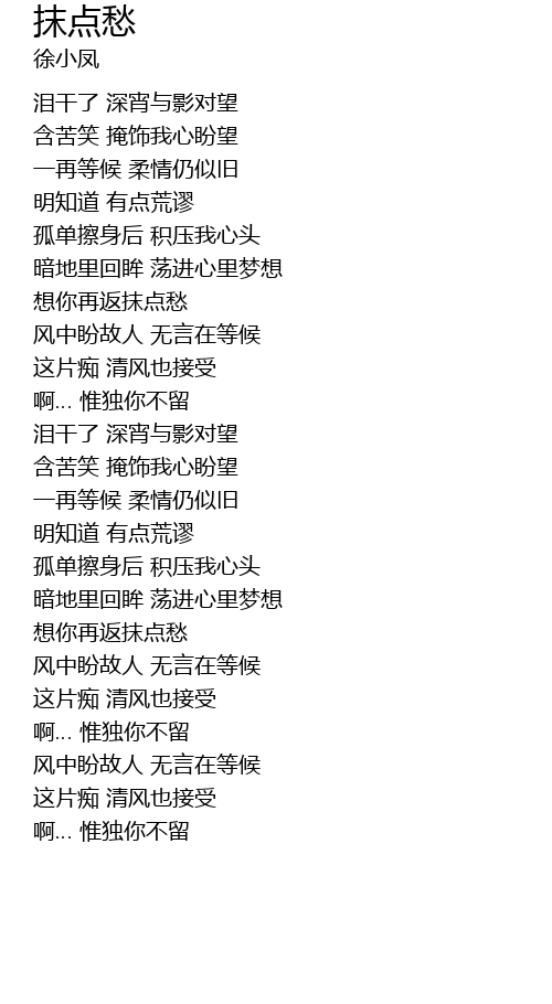 | [00:22.900] | 泪干了 深宵与影对望 |