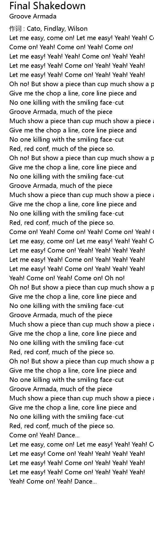 | Let me easy! Yeah! Yeah! Come on! Yeah! Yeah! | |