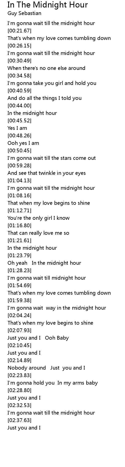 Oh yeah In the midnight hour |