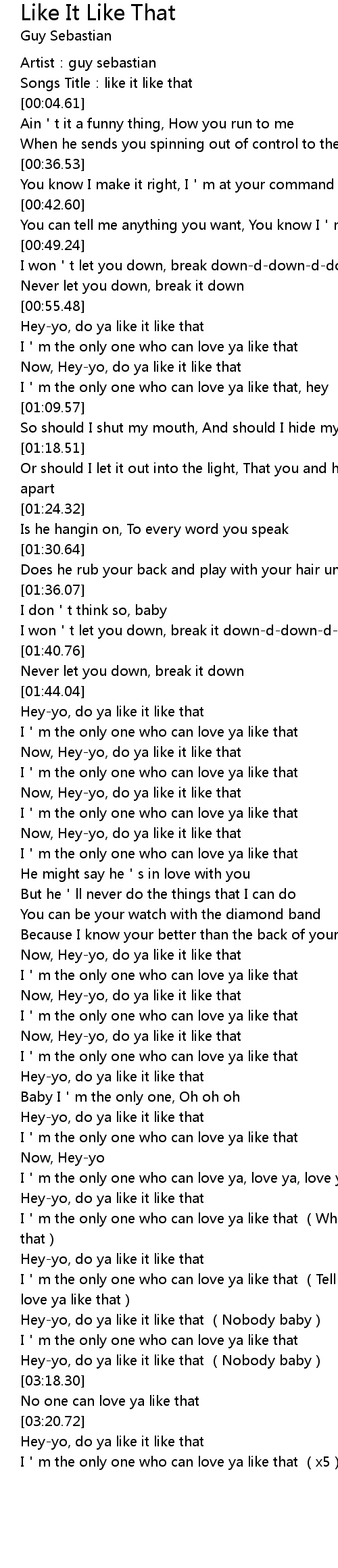 | [03:28.41] | Hey-yo, do ya like it like that |