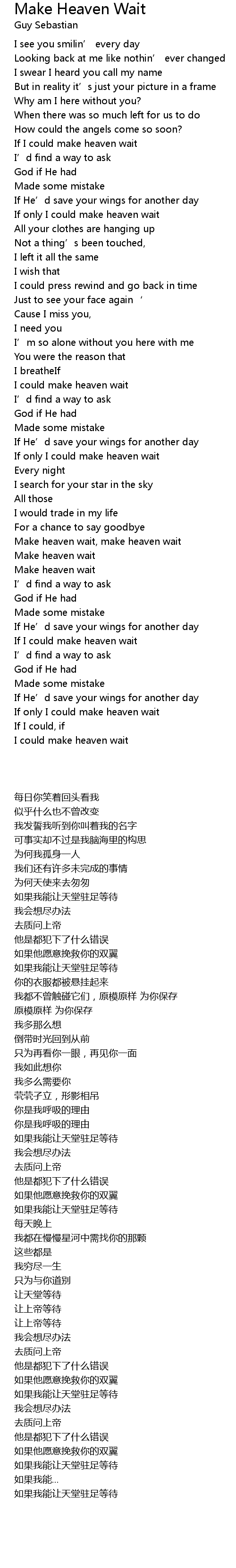 | [02:32.59] | Make heaven wait, make heaven wait |