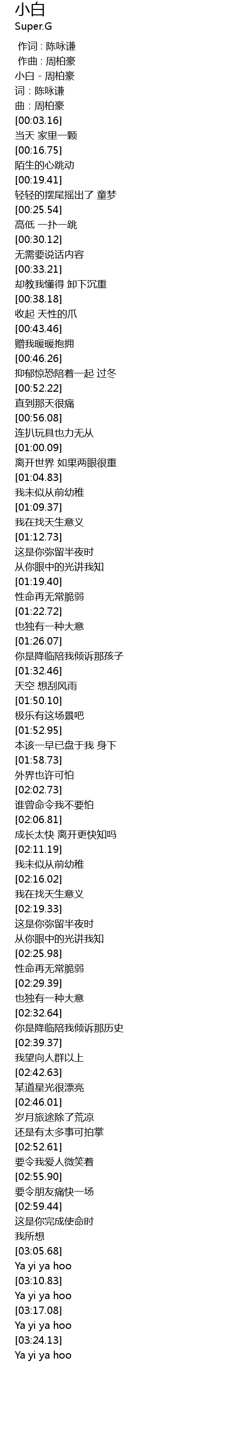 | [00:00.34] | xiǎo bái zhōu bǎi háo |