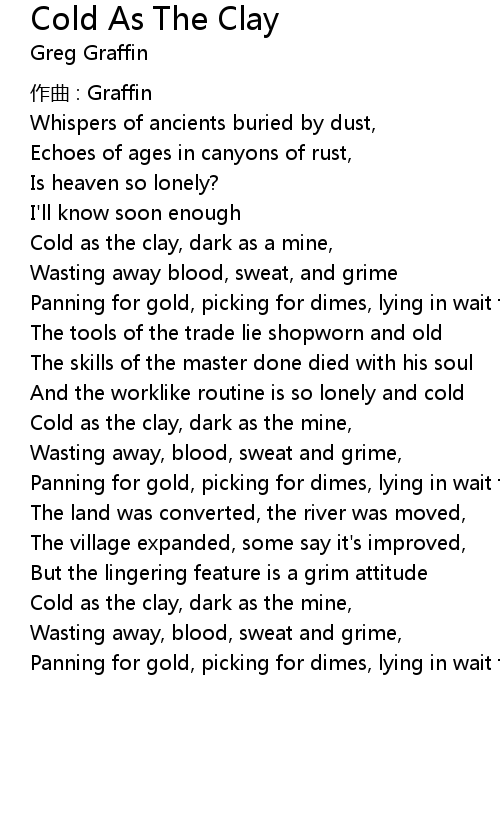 | Song | Cold As The Clay |