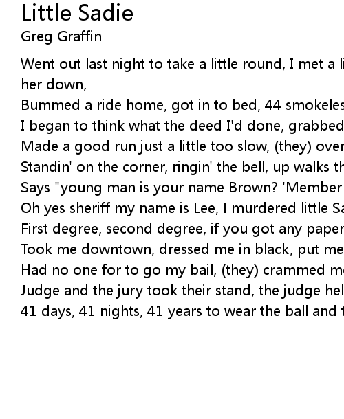 Oh yes sheriff my name is Lee, I murdered little Sadie in the first degree, |