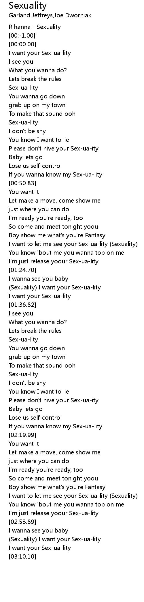 If you wanna know my Sex-ua-lity |