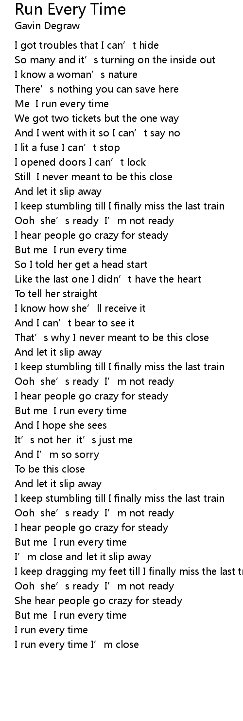 | [00:19.67] | Me I run every time |
