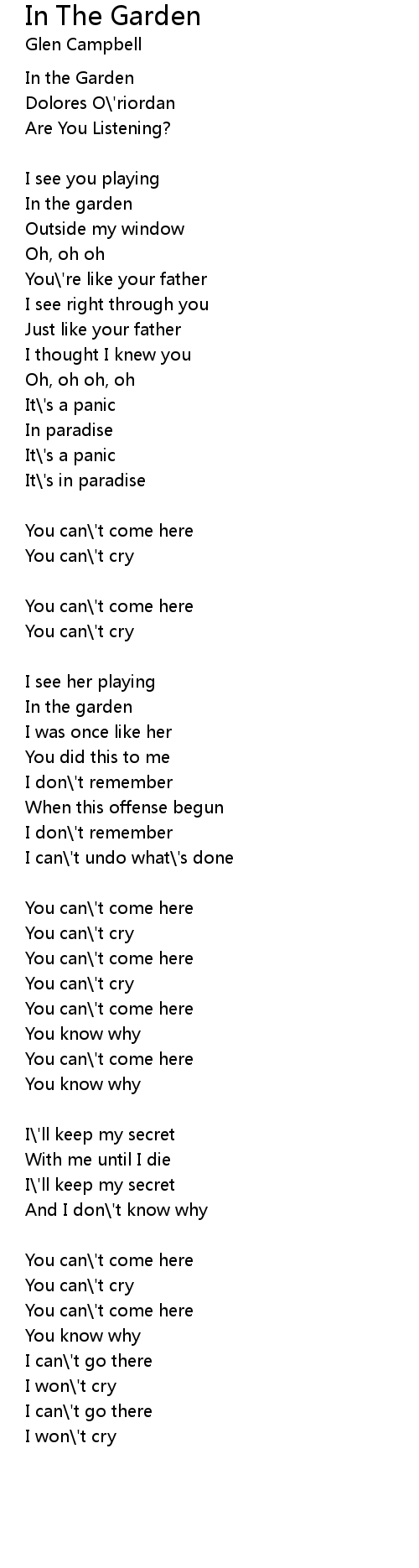 | Song | In The Garden |