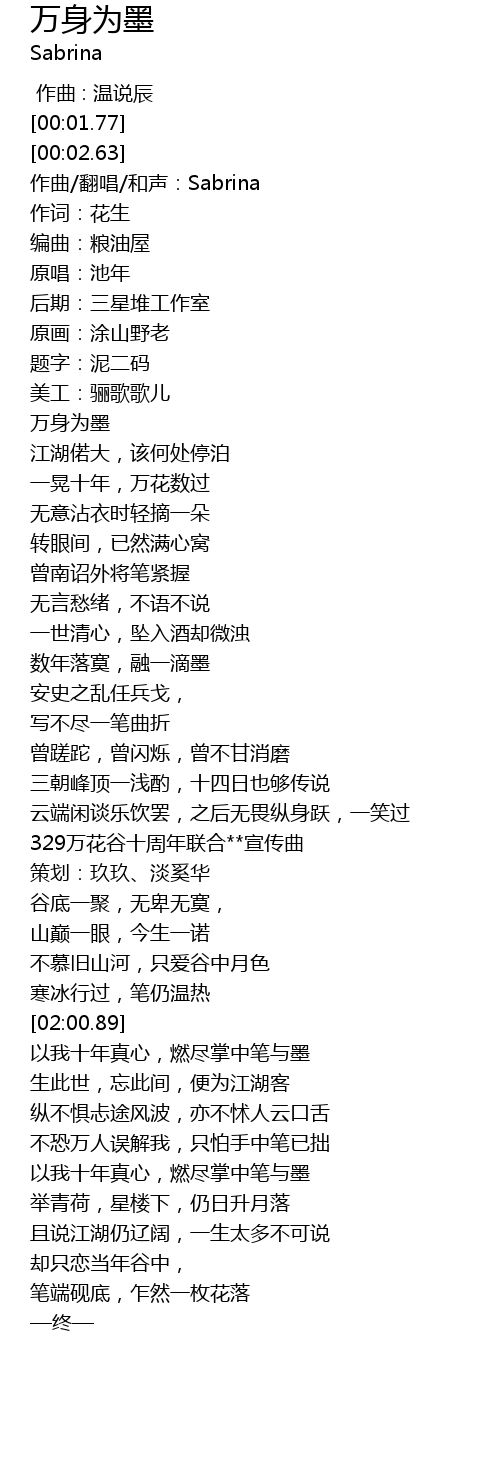 | [02:28.780] | 以我十年真心,燃尽掌中笔与墨 |