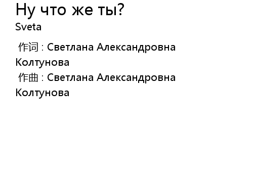 | [00:00.000] | 作词 : Светлана Александровна Колтунова |