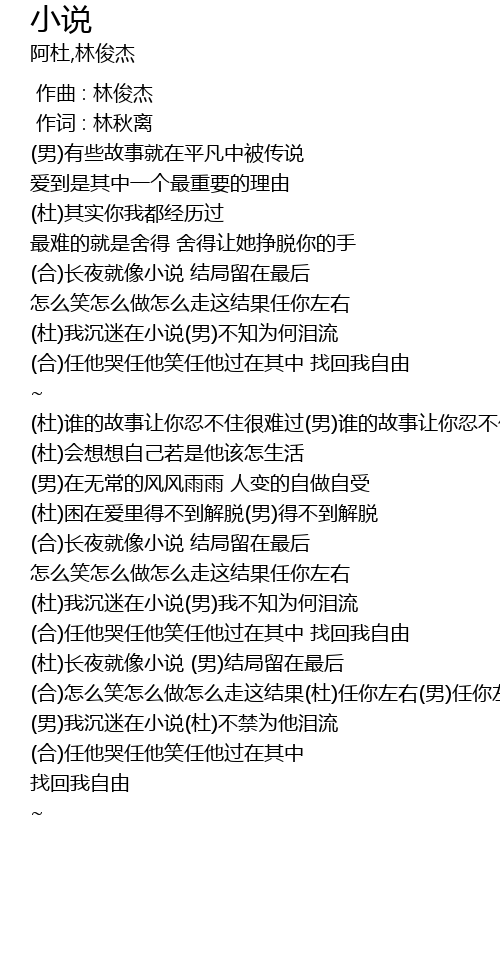 [02:32.30] (杜)我沉迷在小说(男)我不知为何泪流