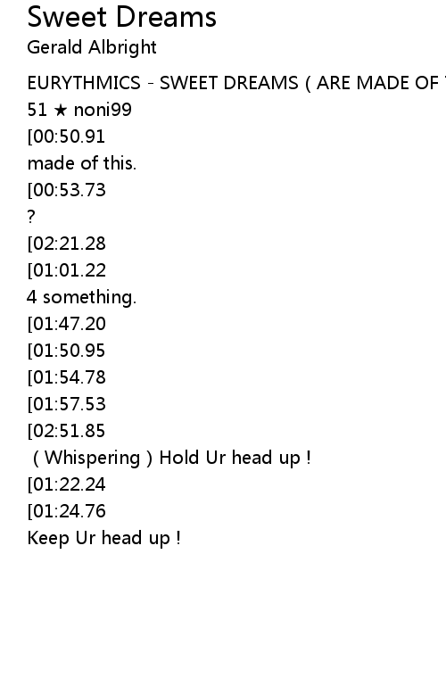 | [00:00.20] | EURYTHMICS SWEET DREAMS ARE MADE OF THIS |