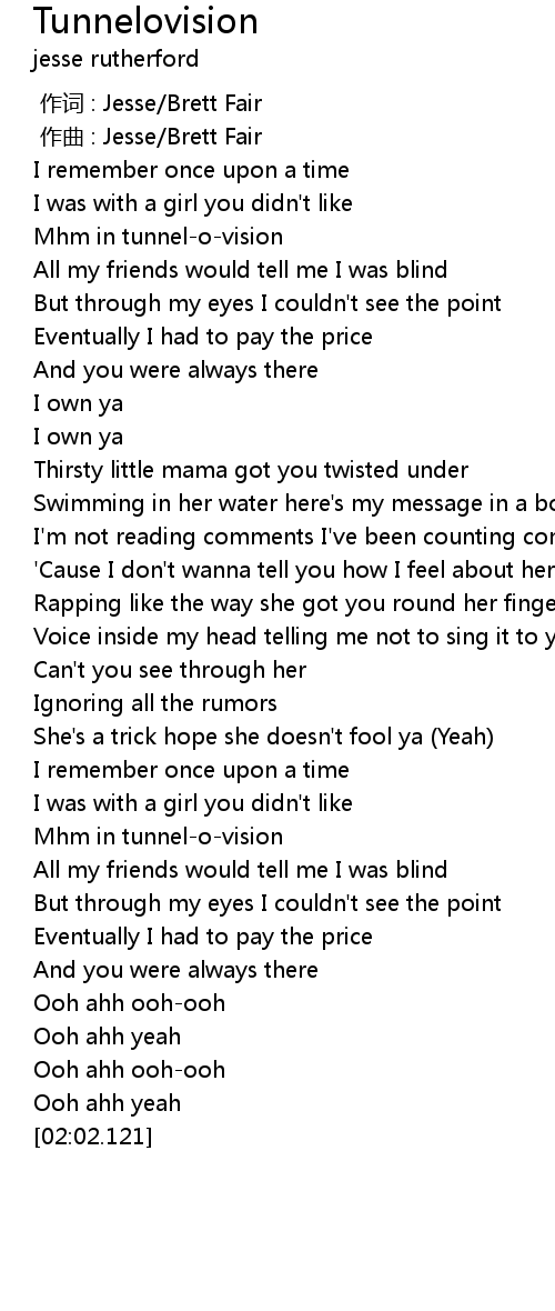 | [00:08.262] | Mhm in tunnelovision |