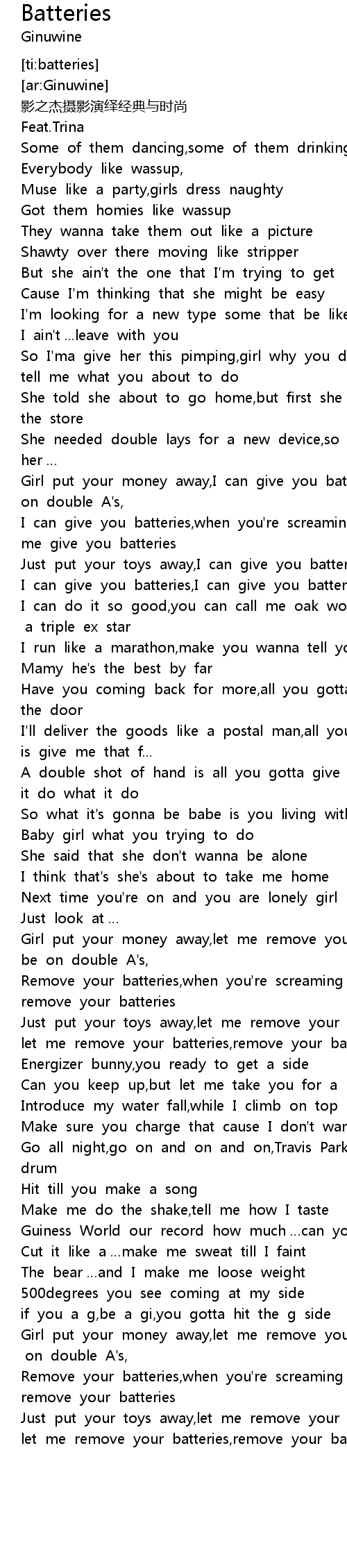 [01:06.446] Girl put your money away, I can give you batteries, I' ll be on double A' s,