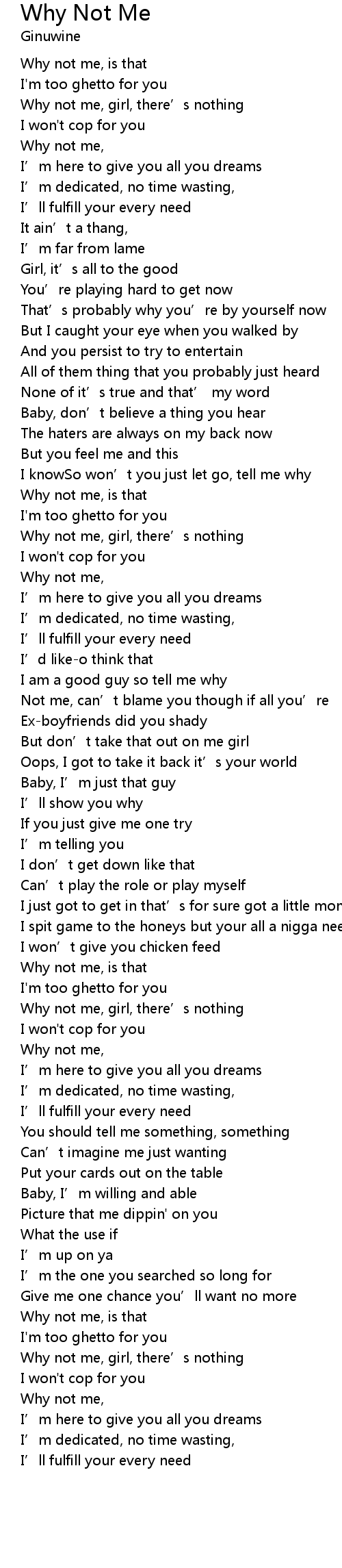 | Why not me, | |