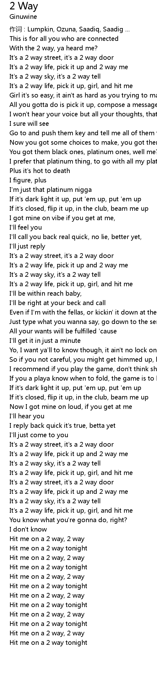| It's a 2 way life, pick it up, girl, and hit me | |