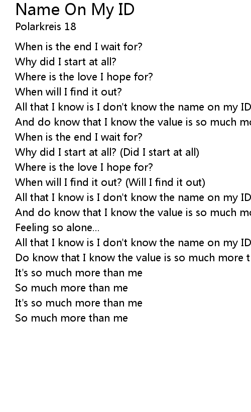 All that I know is I don't know the name on my ID |