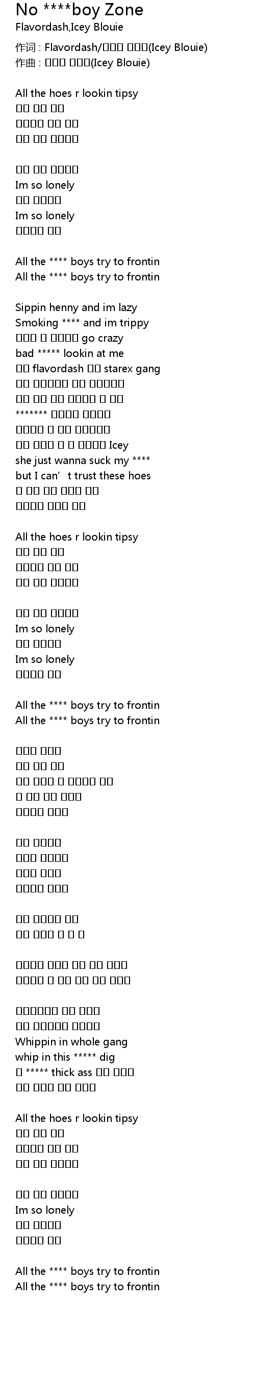 | Song | No ****boy Zone |