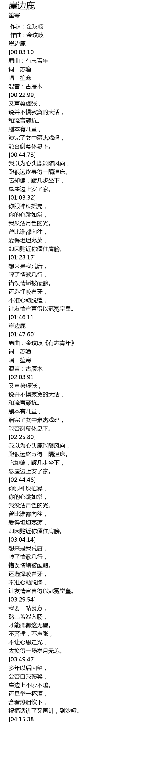 | [01:48.07] | 原曲:金玟岐《有志青年》 |