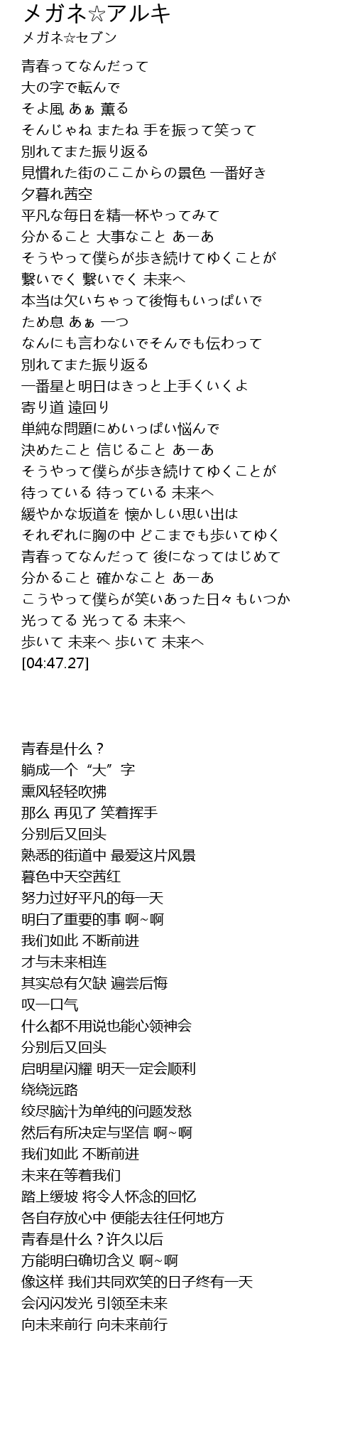 | [04:18.01] | 歩いて 未来へ 歩いて 未来へ |