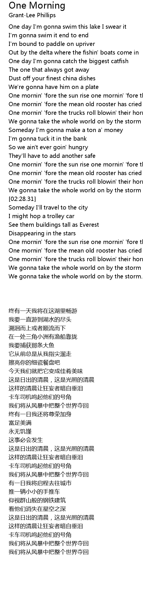 One mornin' 'fore the sun rise one mornin' 'fore the light |