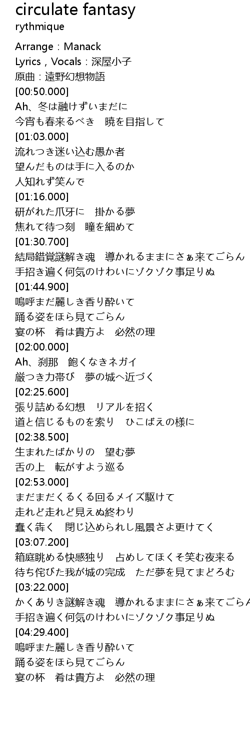 | [00:32.000] | 原曲:遠野幻想物語 |