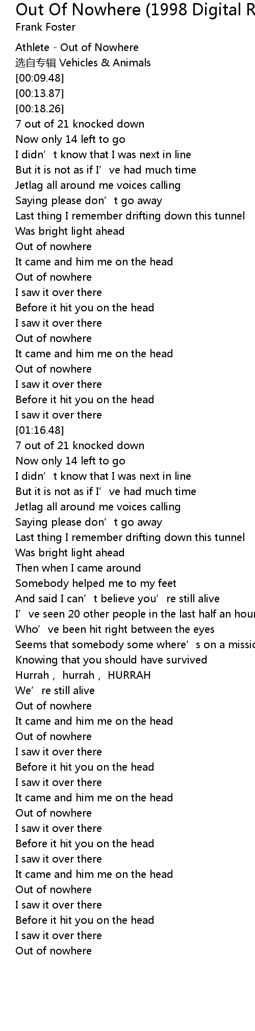 | [01:04.25] | Out of nowhere |