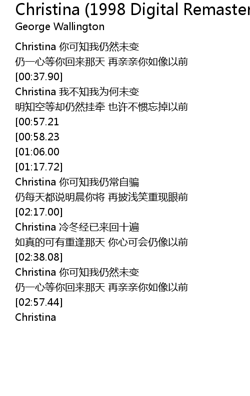 | [02:39.19] | Christina 你可知我仍然未变 |