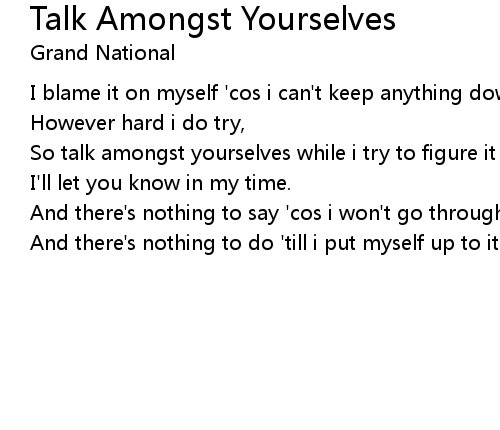 | Song | Talk Amongst Yourselves |