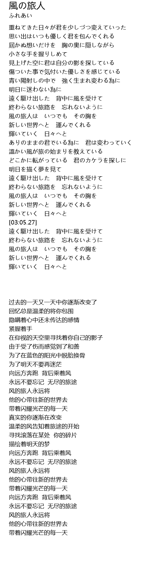 | [03:40.11] | 風の旅人は いつでも その胸を |