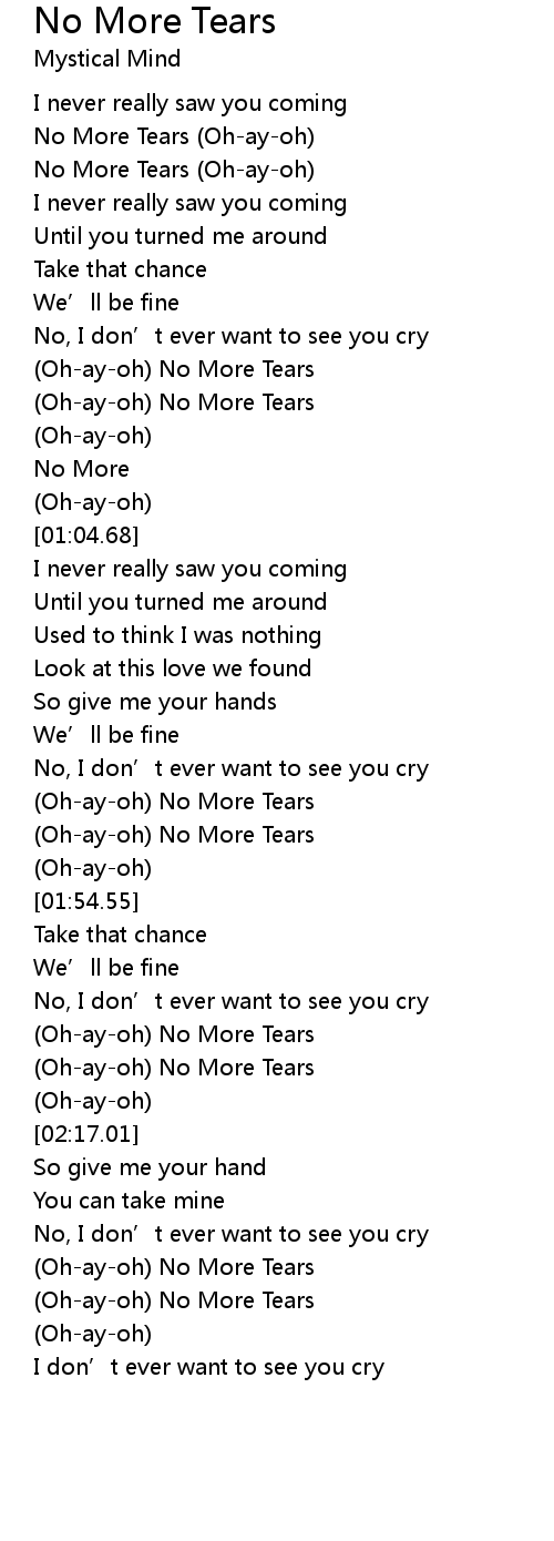 | [00:29.23] | (Oh-ay-oh) No More Tears |