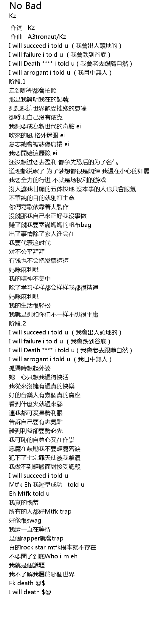 | [02:23.168] | Mtfk Eh wo chi zao cheng gong i told u |